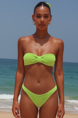 Our ‘Bandeau Bikini Top' is made to slide on easily, for maximum comfort! The knot at the front accentuates your shape and lifts your breasts to create the desired cleavage. Designed to make you look and feel fantastic, whether lounging by the pool or playing on the beach. This swimwear will make you stand out in the best way possible!
