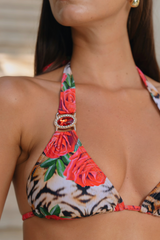 'Malaga' Tiger Rose Triangle Bikini Top