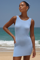 'Powder Blue' Scrunch Low-Back Mini Dress